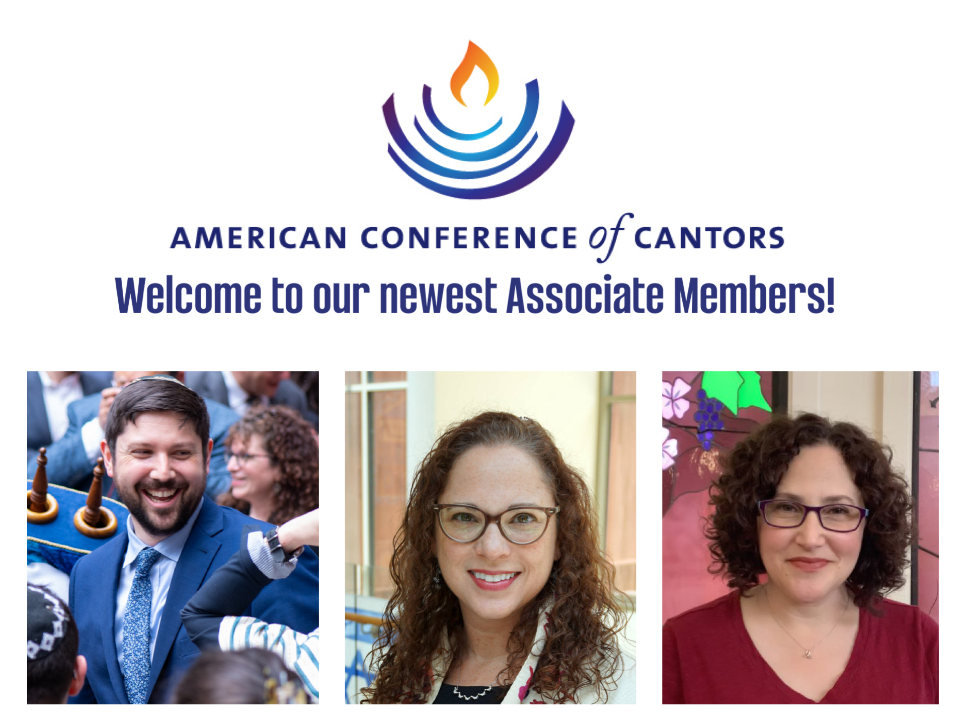The American Conference of Cantors is excited to welcome our newest Associate Members! Welcome Cantor David Childs, Cantor Turia Stark, and AJRCA student cantor (and soon to be ordained) Erica Kane Wisner! We know you will all be wonderful additions to our membership and serve your communities with great care and love. Mazel tov on your acceptance to the ACC! We look forward to welcoming you in person this summer at the American Conference of Cantors-Guild of Temple Musicians Convention in Cleveland.